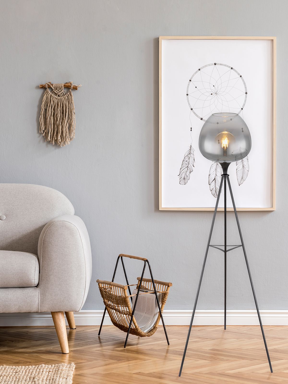 מנורת עמידה בסגנון מודרני בשילוב זכוכית אופל